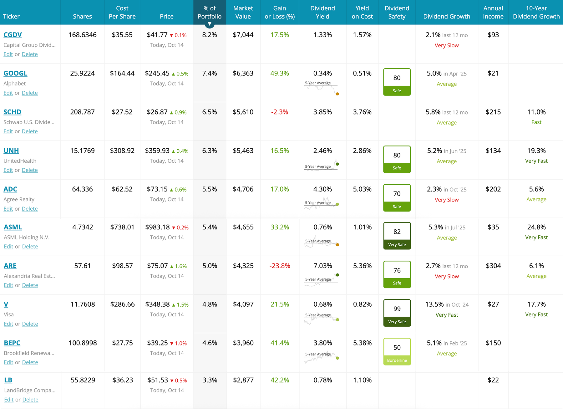 This page is a snapshot of my real dividend portfolio, including core holdings, and my bigger vision for building lasting passive income. Whether you’re just starting out or already a dividend enthusiast, I hope this gives you insight and inspiration for your own journey.
